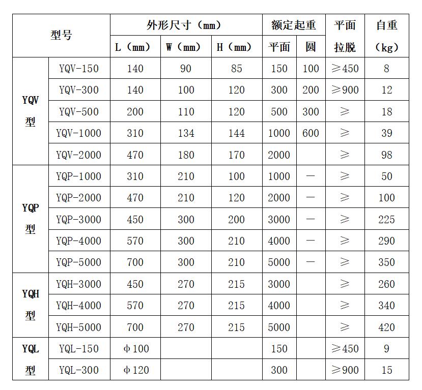 公司还生产了适合不同场合的多种、多规格的永磁起重器,无论是管、板、盘、环,都可适用,主要产品如下: