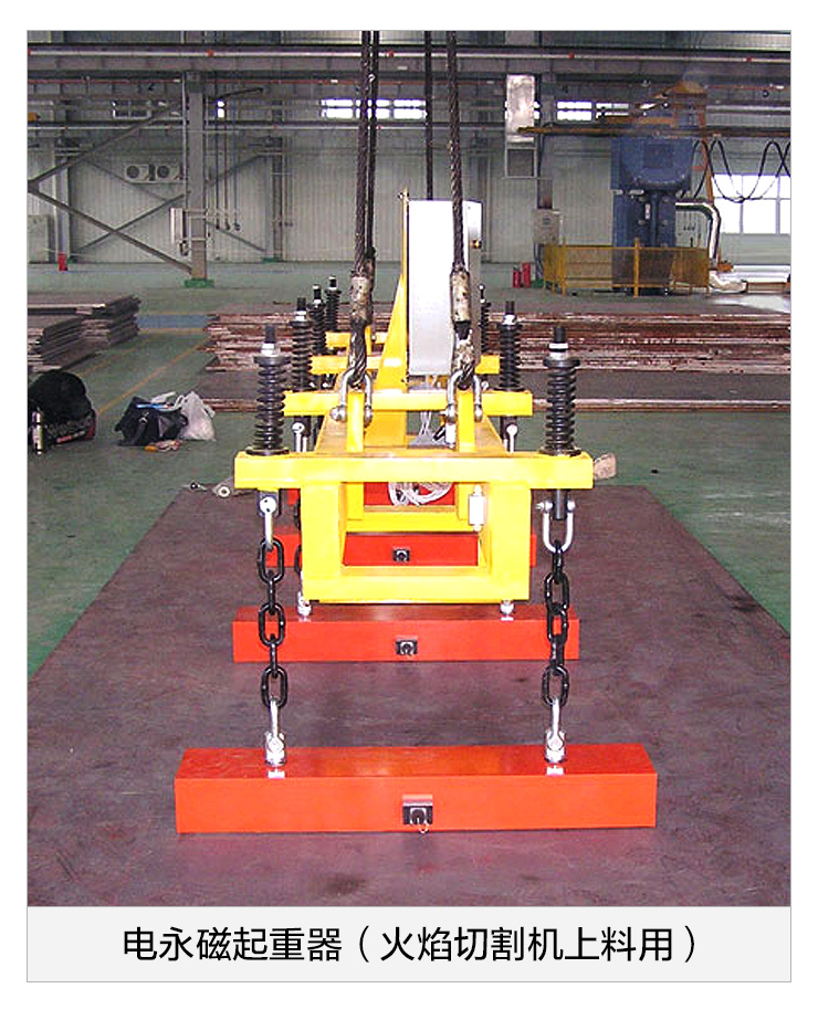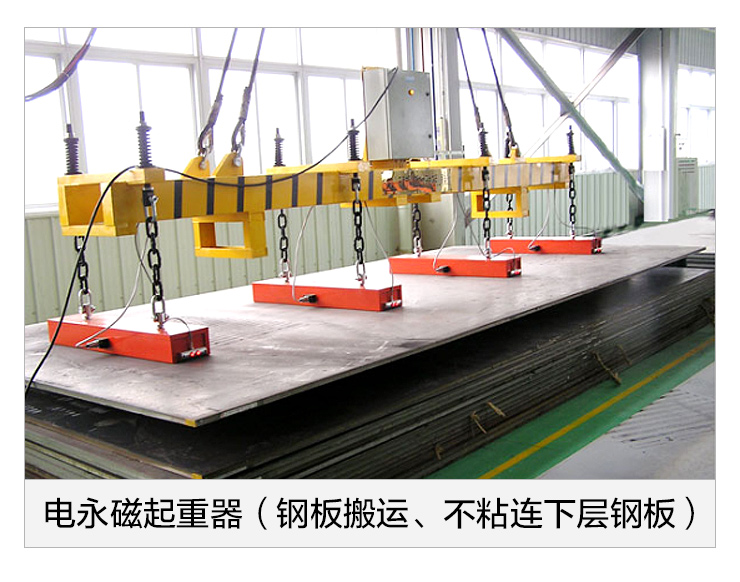 对于单张钢板的吊运尤其对火焰切割机的喂料,要求对钢板平吊平放,且只能对成叠钢板单张吊运不得粘连下层,为此我们生产了DYQ型、DYQL型、DYQH型钢板用电永磁起重器。