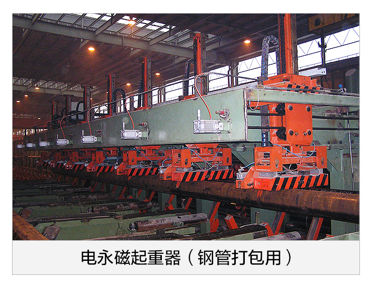 对于排管的吊运或包装因排管的直径变化很大,必须采用线性接触,整排平行吊运,要求吸盘有巨大的磁内能。